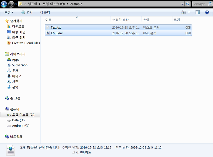 text 파일과 xml 파일을 만들어 봅니다.
