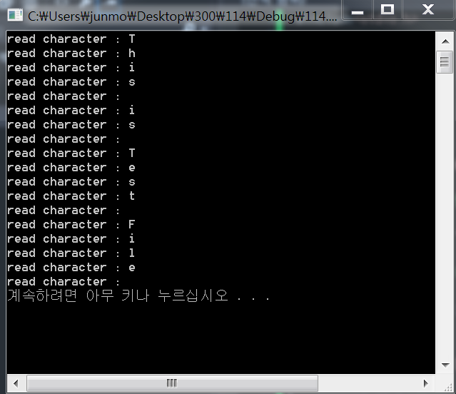 printf_s("read character : %c \n", ch); // 화면에 출력한다.