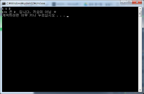 printf("1+1 은 %d 입니다. 귀요미 아님 ㅎ \n",c);