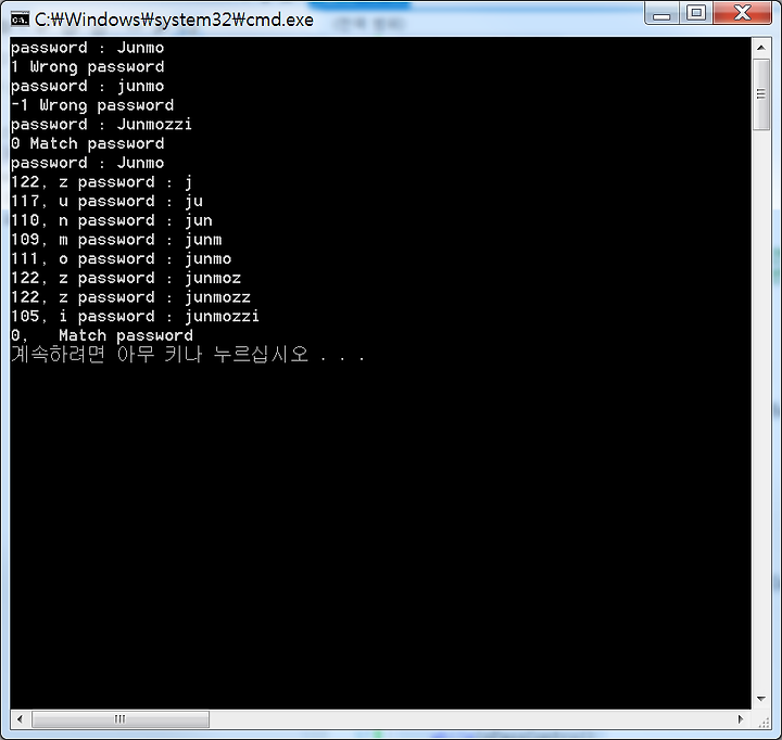nPassControl = _stricmp(pPassword, szBuffer);//대소문자 구분없이 문자값이 맞으면 0을 다르면 1을