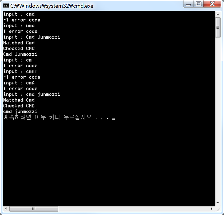명령인지를 체크하고 그명령문이라면 프로그램이 멈추는 기능을 구현해보자.