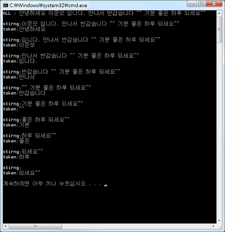 char pString[] = "안녕하세요 이준모 입니다. 만나서 반갑습니다 ^^ 기분 좋은 하루 되세요^^";